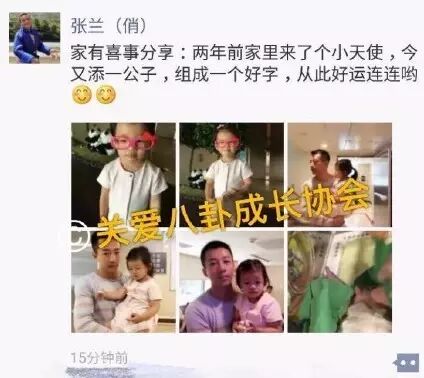早前,大S婆婆张兰在朋友圈发布喜讯:“两年前家里来了个小天使,今又添一公子,组成一个好字,从此好运连连哟。”