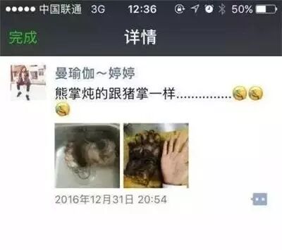 网传北京昌平一瑜伽店法人在朋友圈发疑似食用熊掌照片。涉事者安徽籍女子史婷婷否认吃熊掌,称熊掌照片是从网上下载的。目前警方已介入调查。
