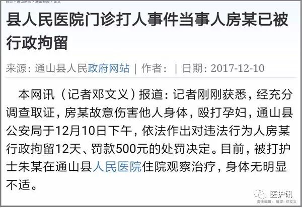 随后在傍晚17时,通山县人民政府在其网站再次刊发通告:打人者房某行政拘留12天、罚款500元。