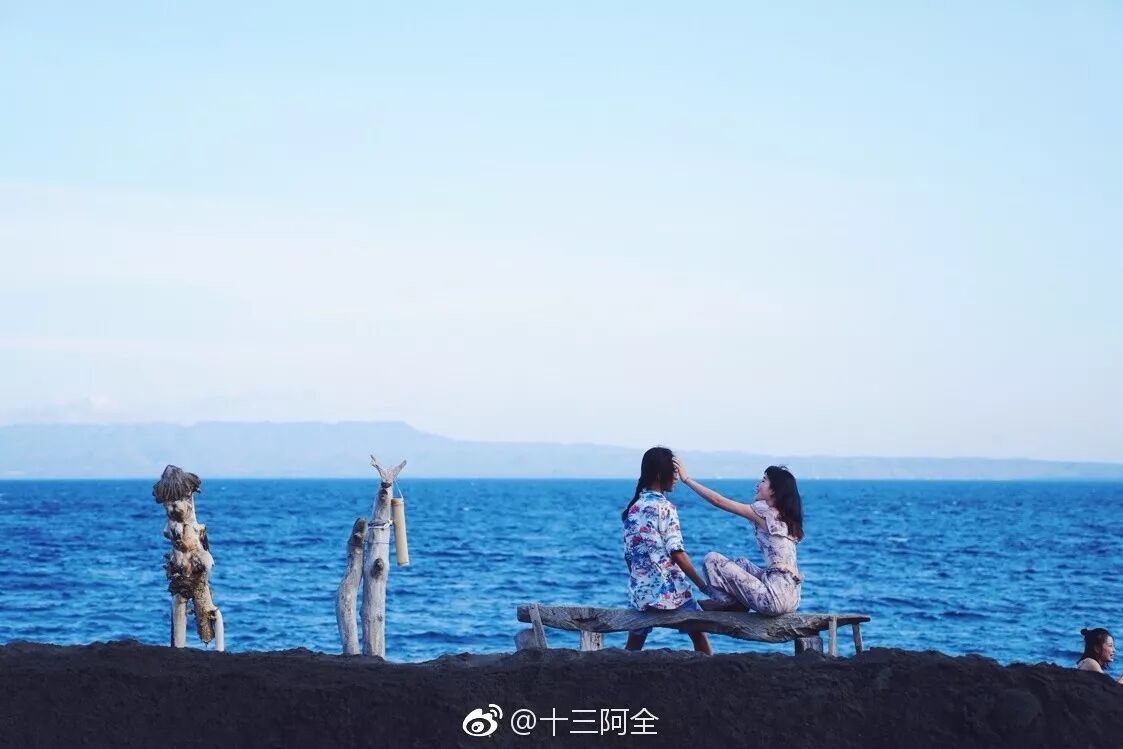 在印尼的粉色沙滩,一起踩着浪、卖个萌。十三说,因为阿全黑,和他合影是最好的美颜;