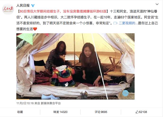 80后情侣大学期间结婚生子,没车没房靠摆摊赚钱环游63国。