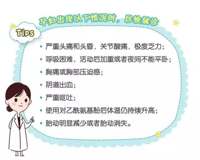 如果病毒性感冒伴有发烧,建议吃对乙酰氨基酚退热,不能硬扛着,持续高烧不处理,会影响胎儿发育。