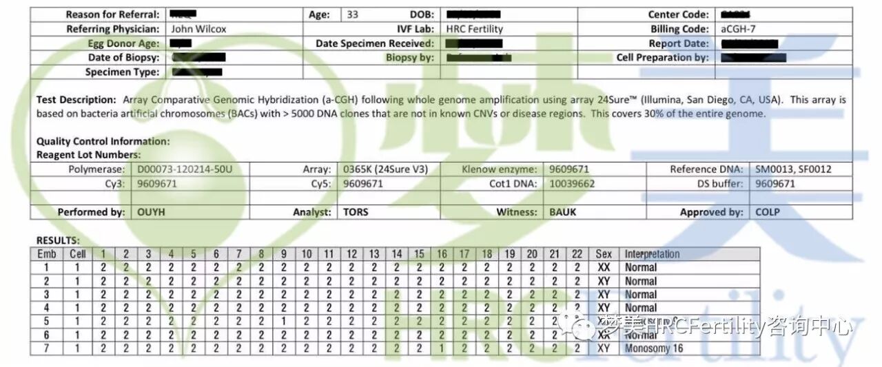 在植入陈女士体内前,为了保证胎儿日后的健康,医生为7个囊胚进行了第三代试管婴儿的核心:PGS\PGD筛查诊断技术;报告出来后,7个囊胚中3男2女共5个囊胚都通过了检查,成为了可植入的健康优质囊胚。根据美国合法选择胎儿性别和夫妻意愿,医生为陈女士植入了一个优质男宝宝囊胚,并将剩余的健康囊胚冷冻保存。