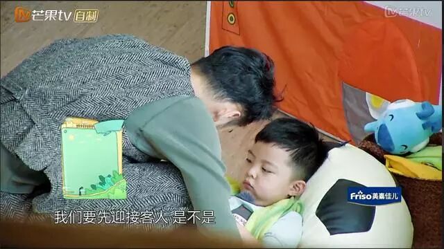 孩子的教养就是这样一点一滴地在平时灌输进去的。这次要给袁弘打call,前几期一直跟在孩子屁股后面照顾看护孩子,终于在上一期明道来的时候学到了孩子也是可以教育的。越来越有爸爸的样子。教育孩子待客礼仪赶早不赶晚,有些爸爸妈妈爷爷奶奶觉得孩子还小,客人来了不吵不闹就算烧高香了。像石头这样沉溺于看书/玩手机/看电视的宅男可不少,从小给他们做示范客人来了要热情迎接很重要。
