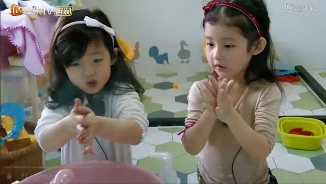 好姐妹一起洗手,讲真泡芙不算很主动的小朋友,却意外地受欢迎