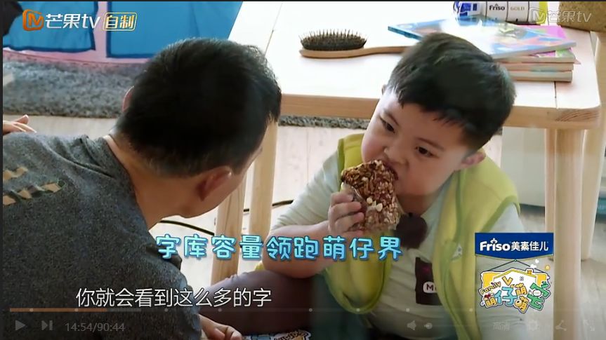 几乎每个来萌宅的嘉宾都会被五岁石头的博学多才,无障碍自主阅读秀一脸。为了和孩子们打成一片,刘耕宏也秀了孩子们一脸,抓梁引体向上,孩子们都看呆了,成功破冰。除了石头,每个孩子都唱了个歌,表演了节目拿到小零食。包括三岁的小金宝。看得出来石头确实不擅长社交和运动,妥妥儿地向知识系学霸宅男发展。石头不愿意表演才艺,刘耕宏另辟蹊径,让他读了一段书。