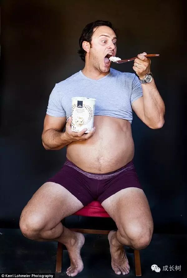 Sylvester 先生在这一组写真集中摆出了各种花样的姿势,就好像是那些他的妻子会摆出来的姿势。这位仅穿着小内裤的男士时而调皮的吃着冰激凌时而慈爱的注视着他可爱的圆肚子。