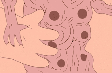 乳头周遭表面凹凸不平有点像菜花状,女性乳头有6-9个输送乳汁的乳腺开口和数量不等的皮脂腺开口,乳头由乳头顶、乳头颈和乳头底组成。乳头颈部受年龄和生育哺乳的生理影响,一般少女乳头颈部短小,上小下大。