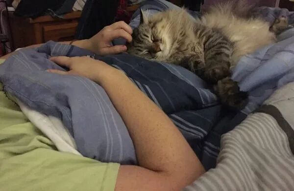 突然有一天,Max竟然主动接近麻麻了!那天,麻麻在睡觉,Max突然跑到她双脚中间,开始蹭蹭撒娇。开始麻麻只是以为它是因为冷才跑过来,以为它每天就是以同样的方式和爸爸睡觉,所以也没多想。