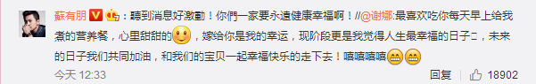 除了网友的一片祝福声之外,好人缘的谢娜和张杰也收到了娱乐圈好友的祝福: