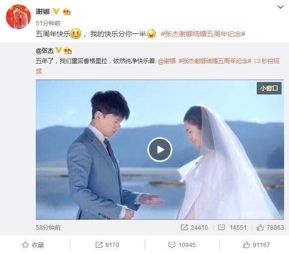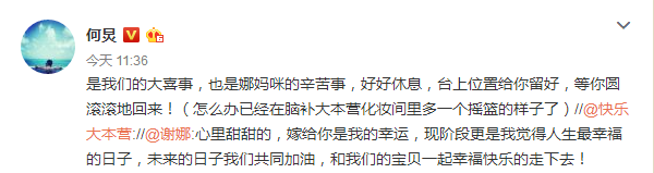 今天(26日)是张杰谢娜六周年结婚纪念日,张杰10:10发微博宣布谢娜怀孕。