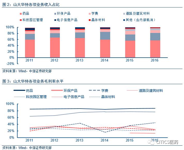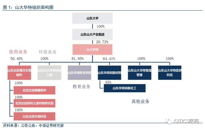 山大华特是山东大学控股的国有企业,山东大学通过山东山大产业集团控股20.72%。上市后公司先后涉足了环保、医药、晶体材料、通信电子、物业管理、教育等行业。随着2011年3月公司将行业分类从“综合类”变更为“医药类”,医药业务的价值得到了公司的高度重视。
