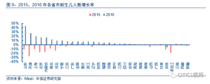 而从地域分布来看,2016年新生儿人数增加较快的区域主要是山东、天津、上海、北京等经济发达的区域,预计主要由于之前农村地区的计划生育政策相对宽松,二胎占比已经较高,因此政策的变化对农村占比较高省份的新生儿人数影响并不明显。而山东、天津、上海、北京等地居民消费能力较强,也是伊可新销售占比较高的区域,因此我们判断伊可新销量增长将显著快于全国新生儿数量的整体增速。
