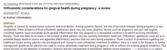2.Orthodontic considerations for gingival health during pregnancy: a review.Int J Dent Hyg. 2010 Feb;8(1):3-9. doi: 10.1111/j.1601-5037.2009.00383.x.