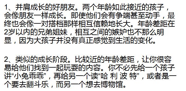 3、财政压力平缓。你可以有一个段积攒期来应付老二的到来,比很短时间内连番轰炸要舒服很多。