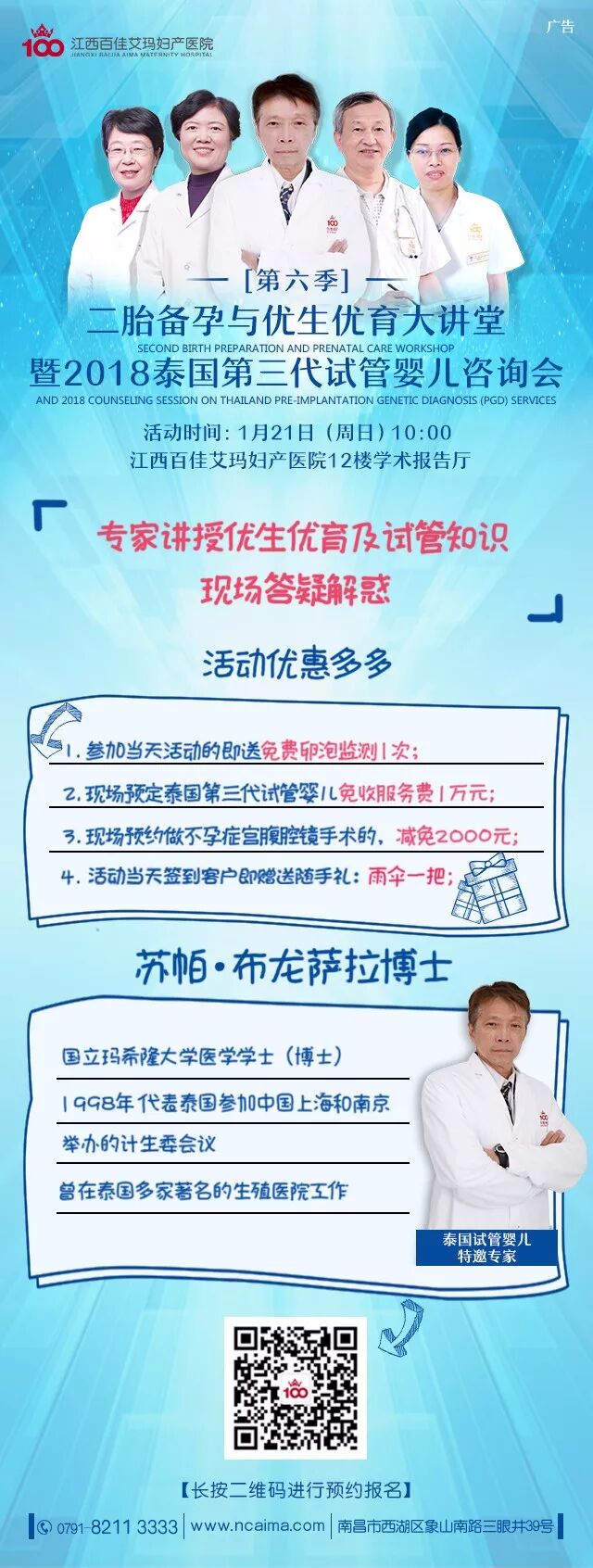为了能更好的解决大家的疑惑,1月21日,江西百佳艾玛医院联合泰国新希望试管婴儿中心,共同主办了一场“二胎备孕大讲堂暨泰国第三代试管婴儿咨询会”,有想生二胎的妈妈千万不要错过咯!