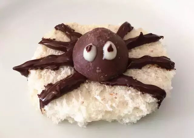 好时巧克力修成圆圆的形状作为蜘蛛的头部,当然,用M豆或是麦丽素更方便哈。