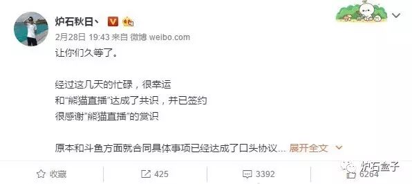 前不久Box君还在每周一八里报道了秋日从全民重新回到斗鱼的消息,然后狗贼还因为在微博里回答“与秋日再度相遇会不会尴尬”的问题,最终差不多有过万人围观,Box君还调侃简直是主播们发家致富的新套路啊。