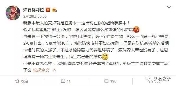 所以不少网友都纷纷向各炉石大神询问新版本的看法...