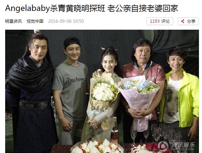 9月9日,Baby拍戏杀青,黄晓明去送花接老婆回家