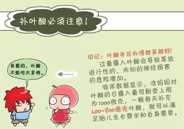 另外,已经出现过胎儿畸形的妈妈们在备孕二孩的过程中,要注意加大补充叶酸的量。