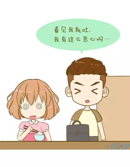 你怀仨月了,“呕”…感受不是跟我,“呕”…一样一样的嘛,还问我,“呕”…干啥呀。