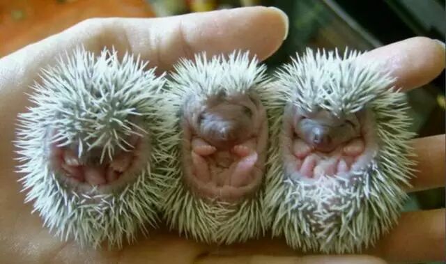 刺猬幼崽刚出生时只有稀疏的软刺,但刺的长度会在五个小时内生长三倍,两周后就拥有了全身硬刺。
