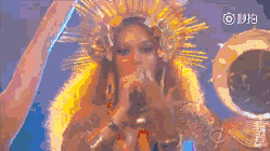 当我们把镜头拉近再拉近,可以看到碧昂斯的脸蛋上化着精致的眼妆,女王范儿十足!什么孕妇不能化妆,在碧昂斯这里根本不成立,还是一样滴美好嘛!