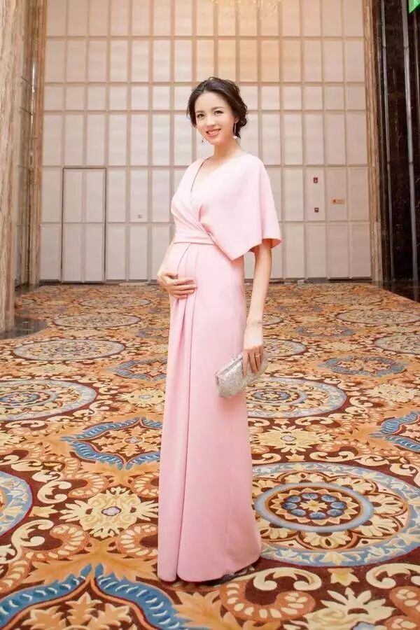 张梓琳更是一袭粉色长裙看不出任何怀孕的迹象。