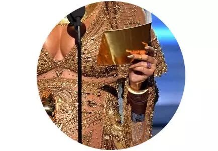 专业十足的BEE姐更是连指甲都照顾到了,为了呼应这一身金光闪闪定制的衣服,Beyonce也涂上了金色的指甲油。