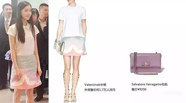穿价值1.7万元的Valentino半裙(有木有发现裙子穿歪了),背近1万元的Ferragamo包包↓