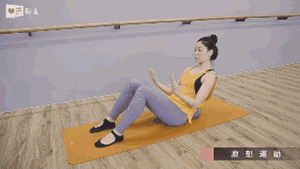 坐在瑜伽垫上,双脚打开与肩同宽,垫一个抱枕在尾椎处,双手抱圆,利用腹部的力量将身体往上提。