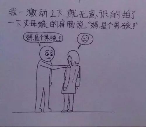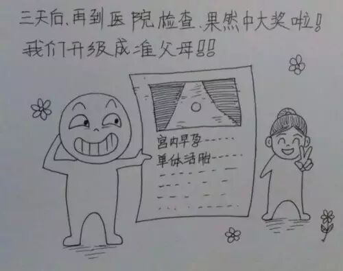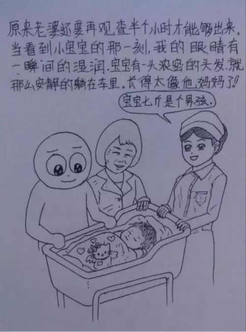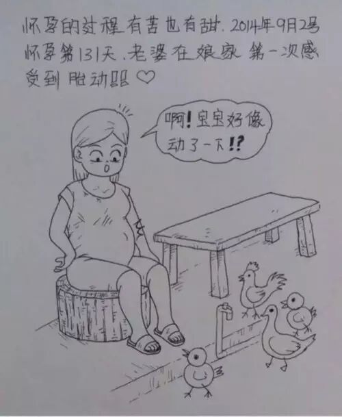 初为人父的男人像个大孩子一样好奇中带着欣喜,下面一起看下一位准爸爸描绘老婆从怀孕到生产的所有幸福细节的漫画吧~~