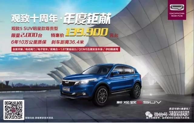 全国特惠价:观致5 SUV明星车型直降35000元,全国限量2000台,温州地区限量10台,先到先得。