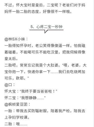 不过,怀大宝时是皇后,二宝呢?老爸们对于妈妈怀一胎二胎的态度,好像很不一样哦。