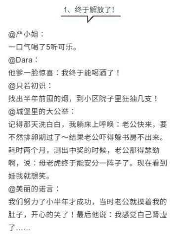 初为人父/母都是一件特别让人激动和欣喜的事情,尤其是老公在听到“有了身孕”这四个字的下一秒,那叫一个惊讶得说不出话、激动得语无伦次!不过,不同性格的人面对这个消息自然也有着不同的反应,来看看大家怎么留(tu)言(cao)的吧!