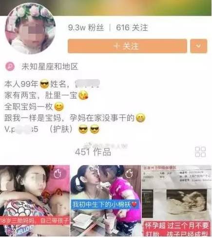 然而令人诧异的是,这些本该是读书学习、为作业考试发愁的“00后宝妈”,却早早地为人母了,她们并不像新闻里的早孕妈妈那样惊慌失措,反而以此为荣,晒孕肚、晒宝宝,小小年纪就当了妈,似乎已经是人生赢家。