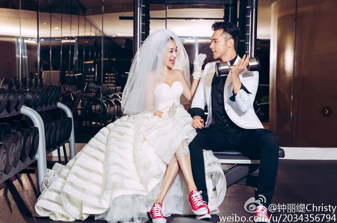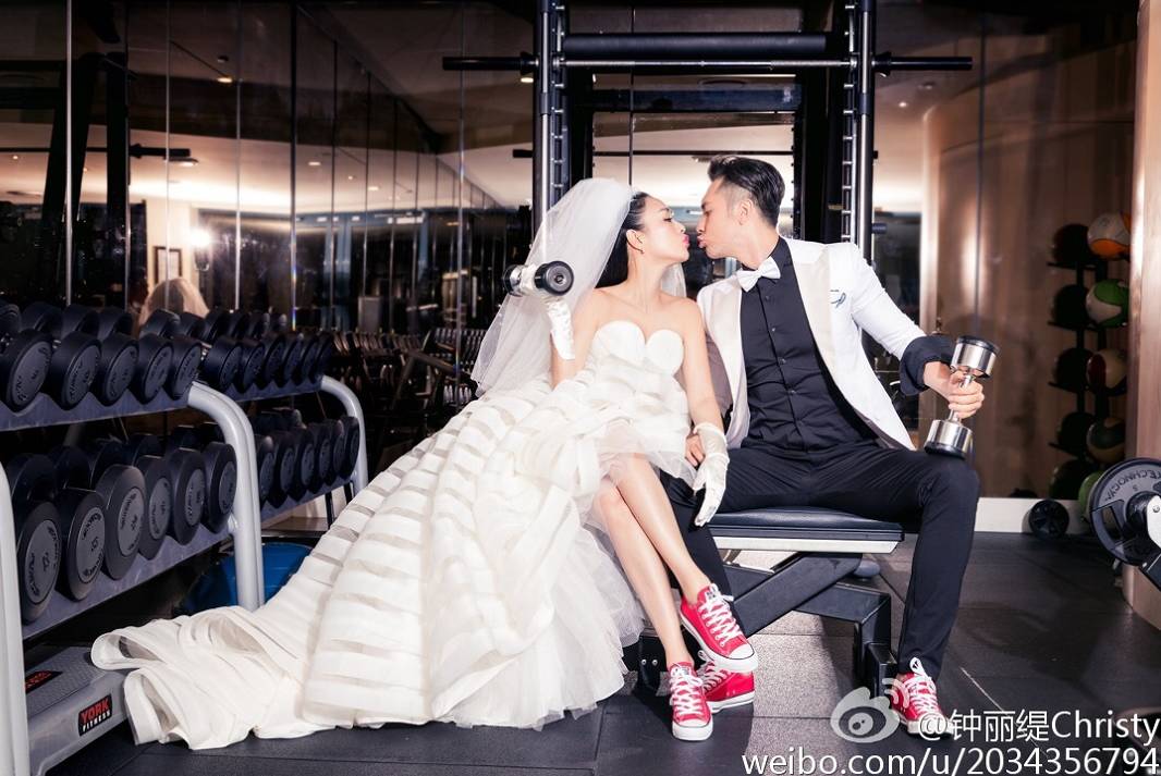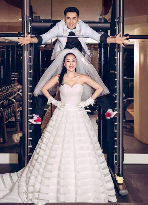 就连两人的婚纱照都是健身主题的
