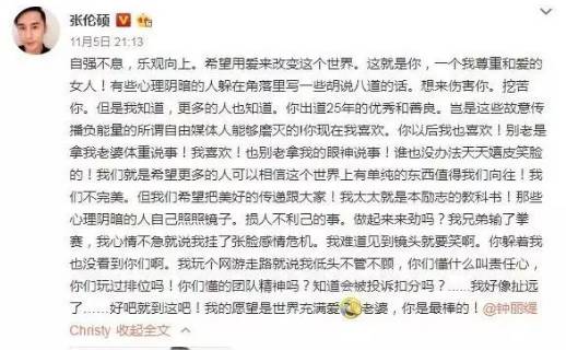 不过人家张伦硕也实力护妻!