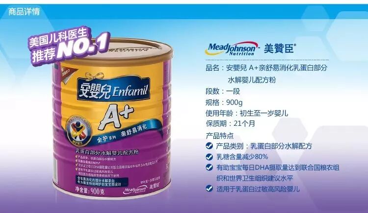 笔者建议如遇到上述喂养困难的爸爸妈妈,可以尝试给宝宝换水解蛋白奶粉,这种奶粉把蛋白质分解成小分子,比较容易消化,可以减少胀气和湿疹过敏(推荐美赞臣和雅培),一般实体店都能申请 300g 的小罐试用装,让宝宝试一试合适与否。