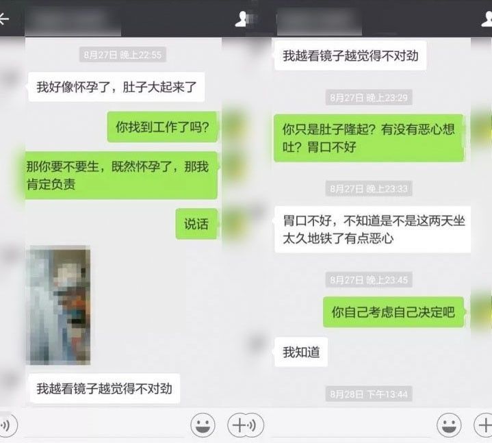 没想到,在9月27日,女主到了广州又来和我说怀孕了。在第一时间我是想和她结婚并生下孩子的,并且答应她让我妈妈过来照顾她。他一直不肯结婚。这个时候我已经被他折磨得神经错乱,既然她不肯结婚,又不肯生孩子,那就让她去打掉,于是就有了你们看到的对话,是我让女主去打胎的。但是!!对话中她做了部分删减,看起来她是很无助的一方,实际上她表示她会先找个人结婚,把孩子生出来,不给我认!以下我将对话复原!