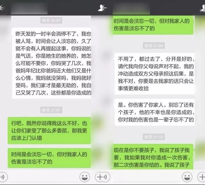 我的父母已年过半百,他们是善良安分的人,我不能让他们再因为我的事情受到影响,辛苦抚养我长大,不能因为我一人不成熟做出的混账事就埋没了他们对我的养育之恩。而给旁人觉得做错事的是他们。因为从始至终都是我自己做了错事,父母也及时的训导我要敢于承担自己犯下的错误,去尽力的去弥补,而不是一味的放任不管。人谁无过,重要的是最后做出了什么样的改变,我的改变相信大家看了上面的对话都有目共睹了。但是我亦为人子女,亲情和爱情一样很重要,所以在我为爱情尽责的时候,也要为亲人尽责,在我理清整件事情的来龙去脉后,女主也消失联系不上后,我深思熟虑后决定报警,请大家相信我并不是想把事情白日化,只是想第一次作成年人后的自己认真负责的去处理这件事情。还想说一句的是,可怜天下父母心,我的家人在听到我的决定后,确是想要阻止我,他们说,大事化小就好,毕竟对方是女孩子,不像你,你是男人,脸皮很薄,不好闹大,对方的父母也是会心疼的。以上,也许这就是我的家庭教育的氛围,也是我后来大转变的原因,我要那个孩子。愿意与女主一起组建家庭。并为之付出努力。