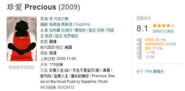 影片名字就是女主名字,珍爱(Precious)含有珍贵疼爱的意思。