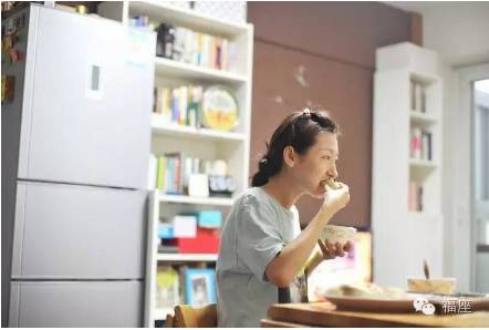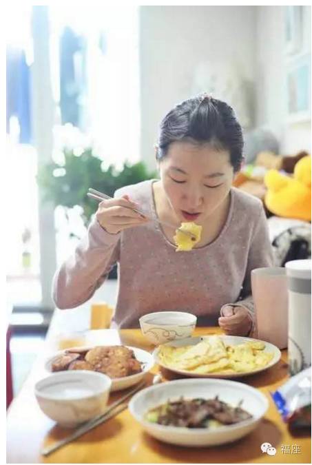 怀孕第72天,家里开着空调,juju怕感冒,把自己裹的厚厚地吃饭。