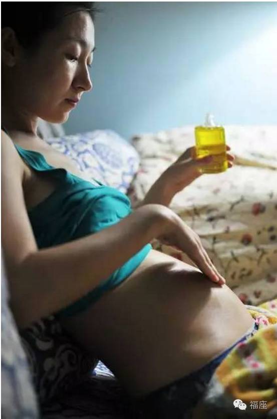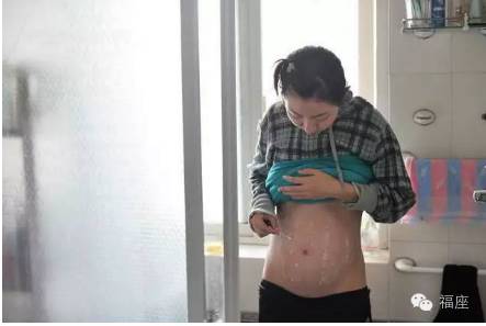 怀孕第238天,ju洗完澡正在给肚子抹油。