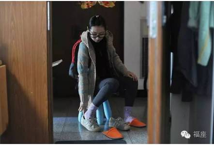 怀孕第145天,早上出门,肚子已经影响到下蹲动作,ju只能坐在小凳子上穿鞋。