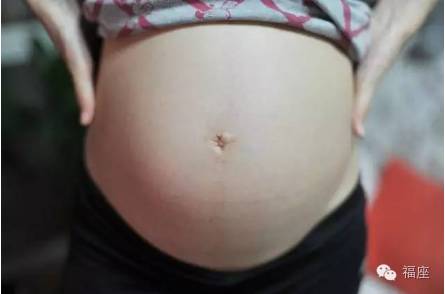 怀孕第120天,ju的肚子越来越大,肚脐眼就快鼓出来了。