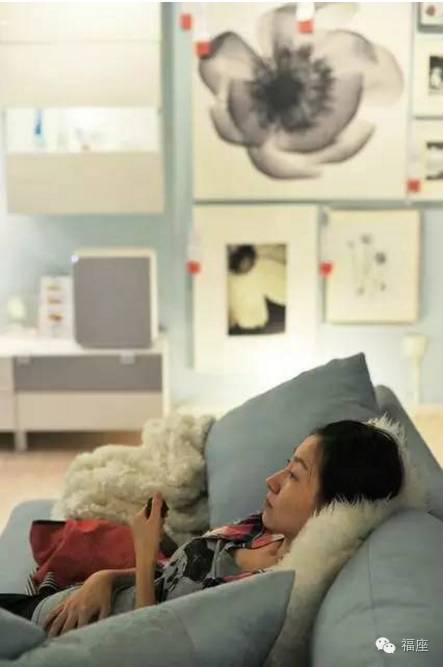 怀孕第98天,即将搬家,逛宜家的时候走累了,JUJU躺在样板间沙发上休息。