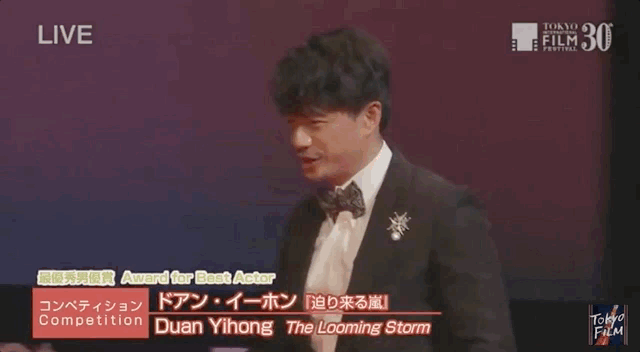 11月3日,第30届东京国际电影节闭幕,段奕宏凭《暴雪将至》封影帝,主竞赛单元唯一女评委赵薇为他颁奖。