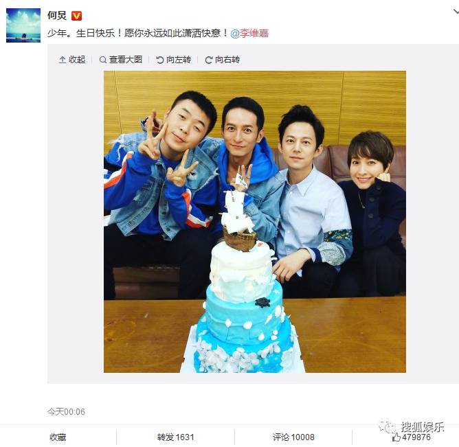 零点,何老师率先发出了一组快乐家族集体为嘉哥庆生的照片。照片中除了在家养胎的谢娜外,四个人都凑在了一起。